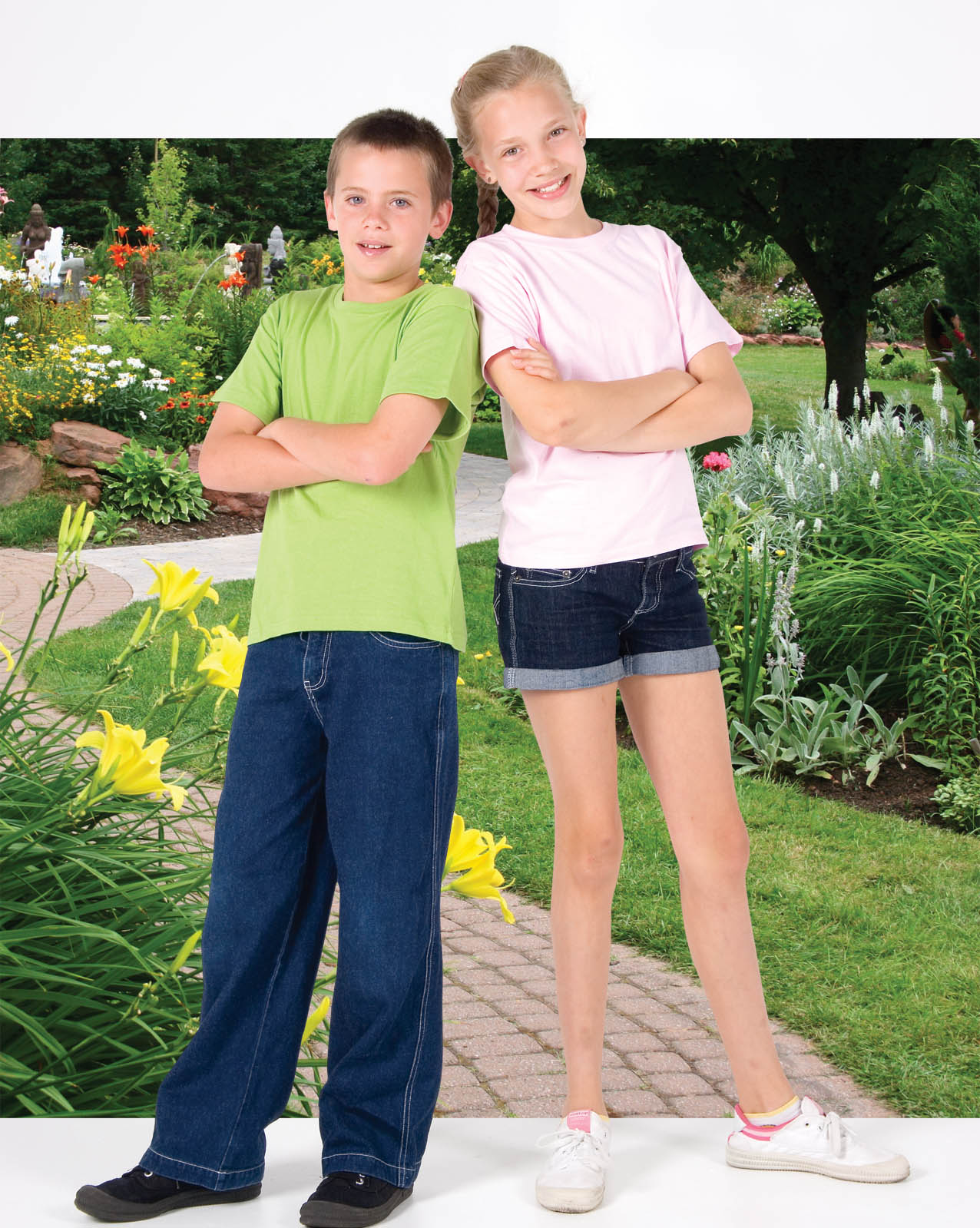 Side seamed, double needle hems, preshrunk to minimise shrinkage