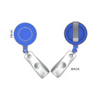Retractable ID holder with a reliable steel spring and a standard dome attachment for holding plastic ID card holders. It has a pocket clip on the reverse and a split ring on the top for attaching it to a lanyard. Lanyards and clear vinyl ID holders are available on request.