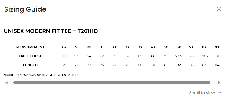 | Size | XS | S | M | L | XL | 2XL | 3XL |