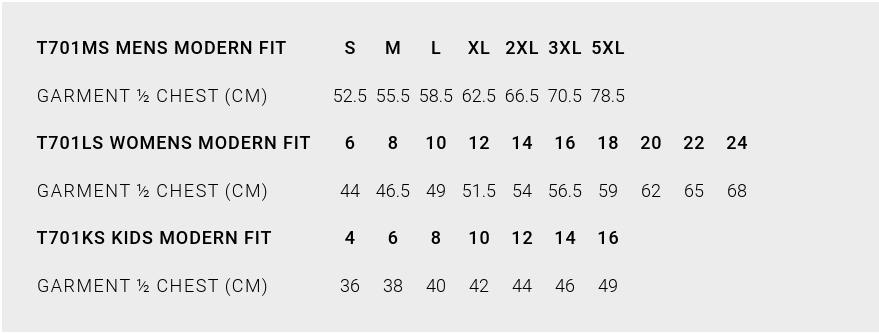 Neck ribbing, side seamed, neck seam twin needle stitch, shoulder to shoulder tape, double needle hems, preshrunk to minimise shrinkage.